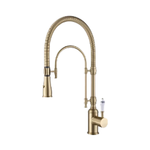 European Style 360 Swivel Brass Copper Body Hot and Cold Brushed Gold Pull-Down Spring Kitchen Mixer Sink Faucet Sink Tap